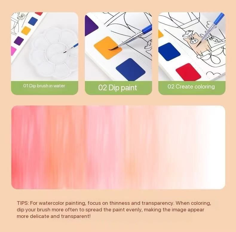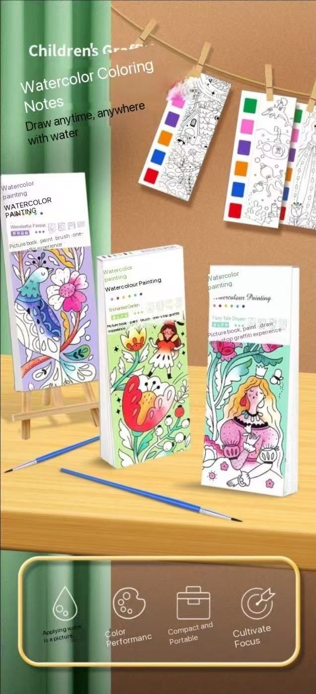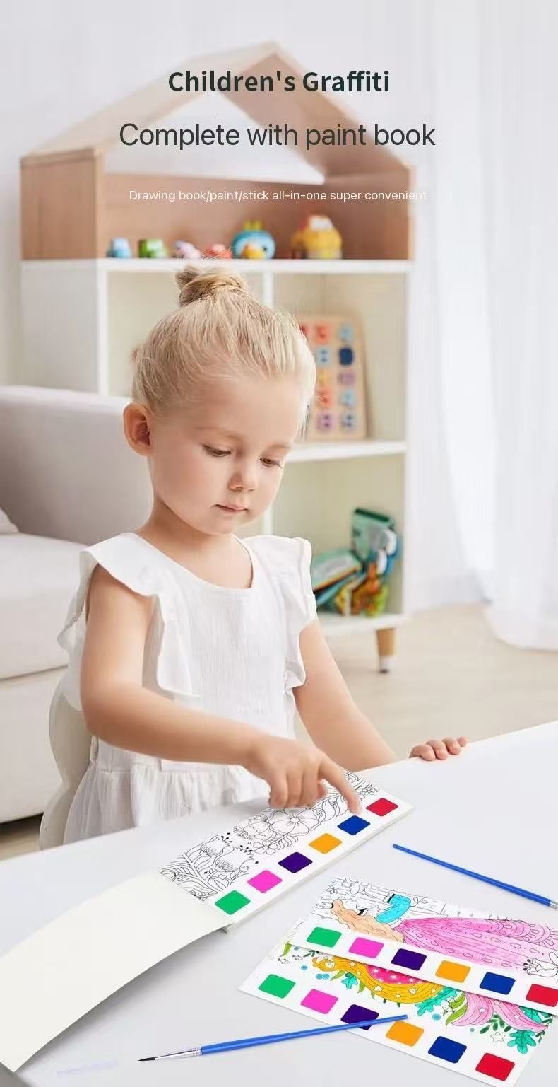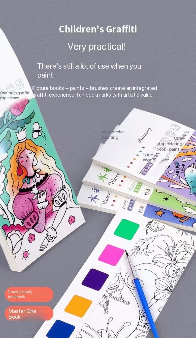 (Pack of eight)Children's watercolor coloring book note graffiti painting coloring book kindergarten with its own pigment gouache portable painting book