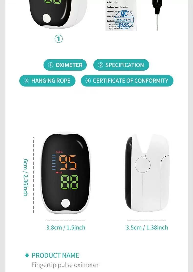 Finger clip pulse blood sugar home blood oxygen saturation monitoring heart rate oximeter